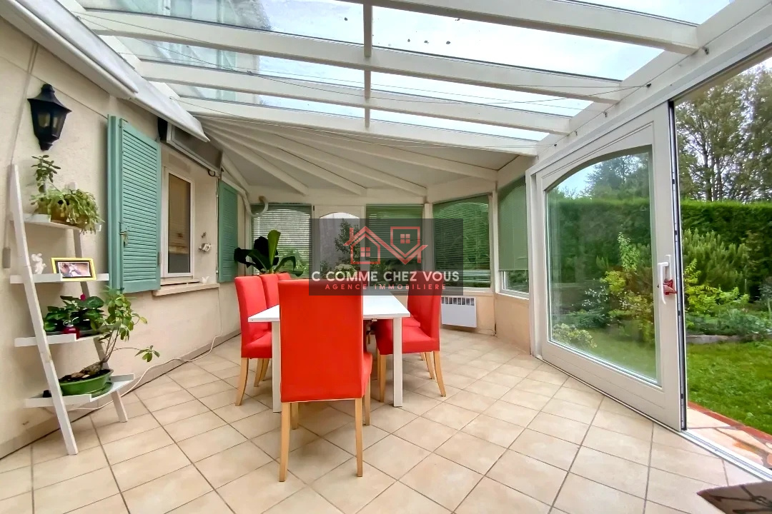 Le sejour bénéficie d'une double exposition et se prolonge d'une véranda qui permet de profiter du jardin en toutes saisons.