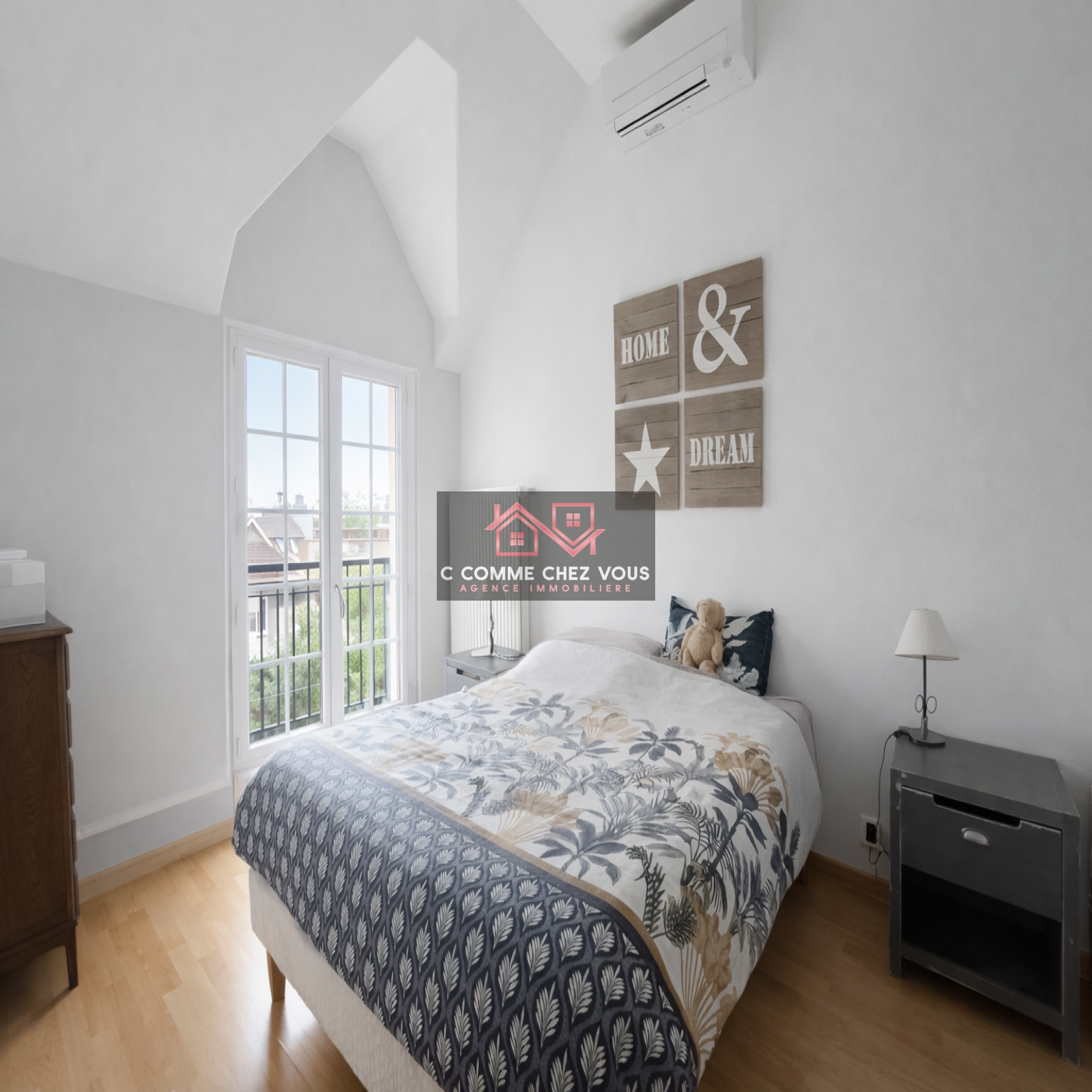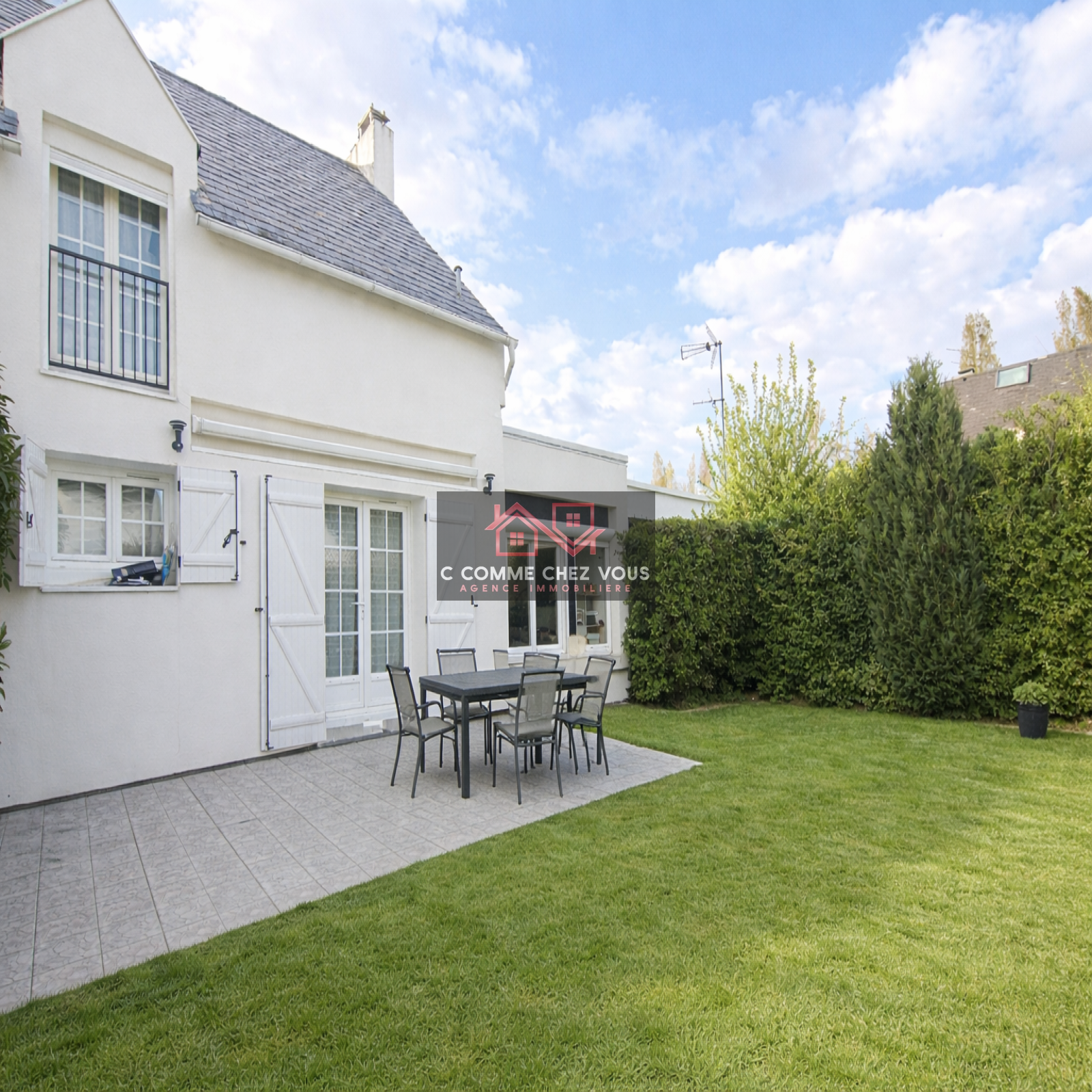 Jardin privatif avec portillon qui permet de profiter du parc réservé aux copropriétaires et garage attenant