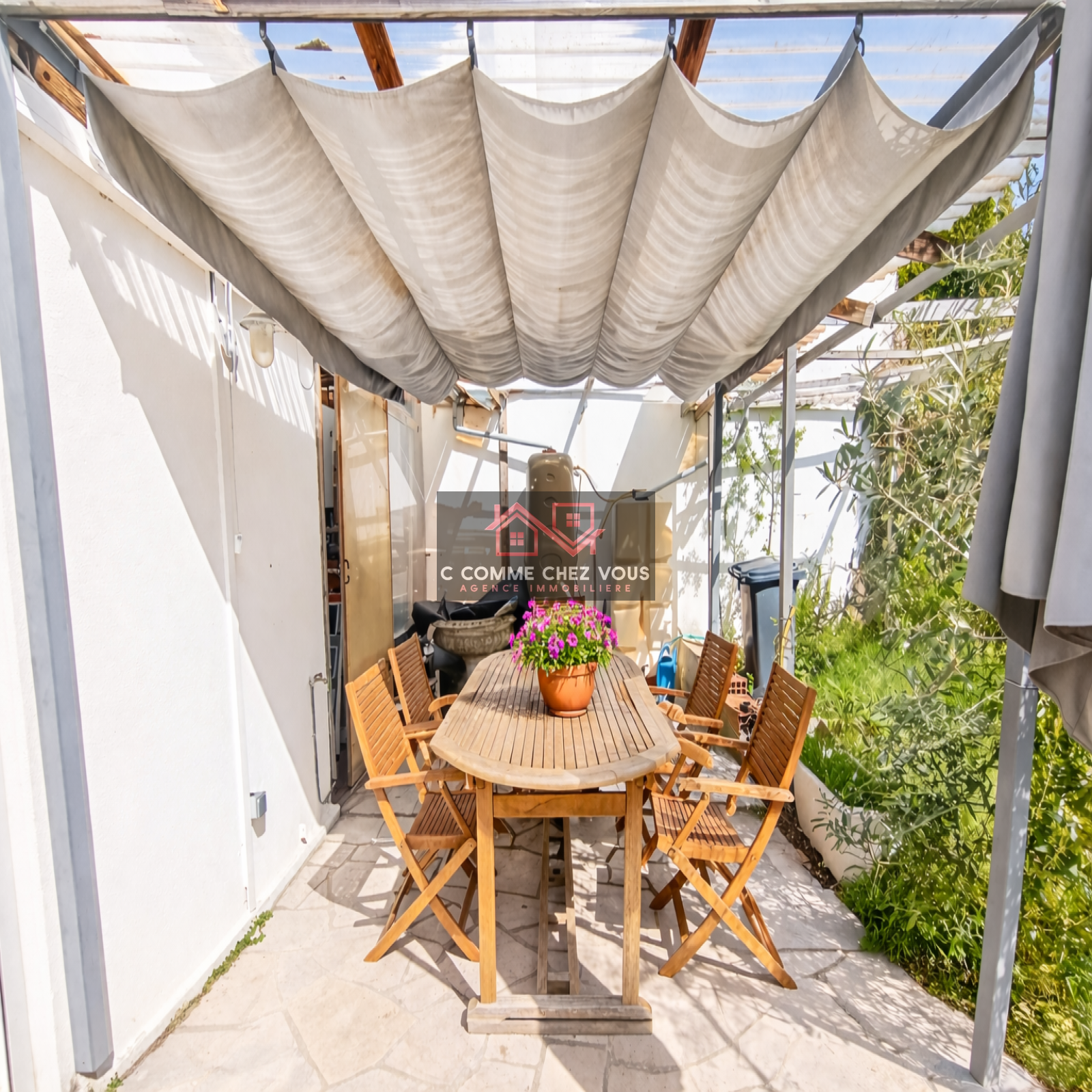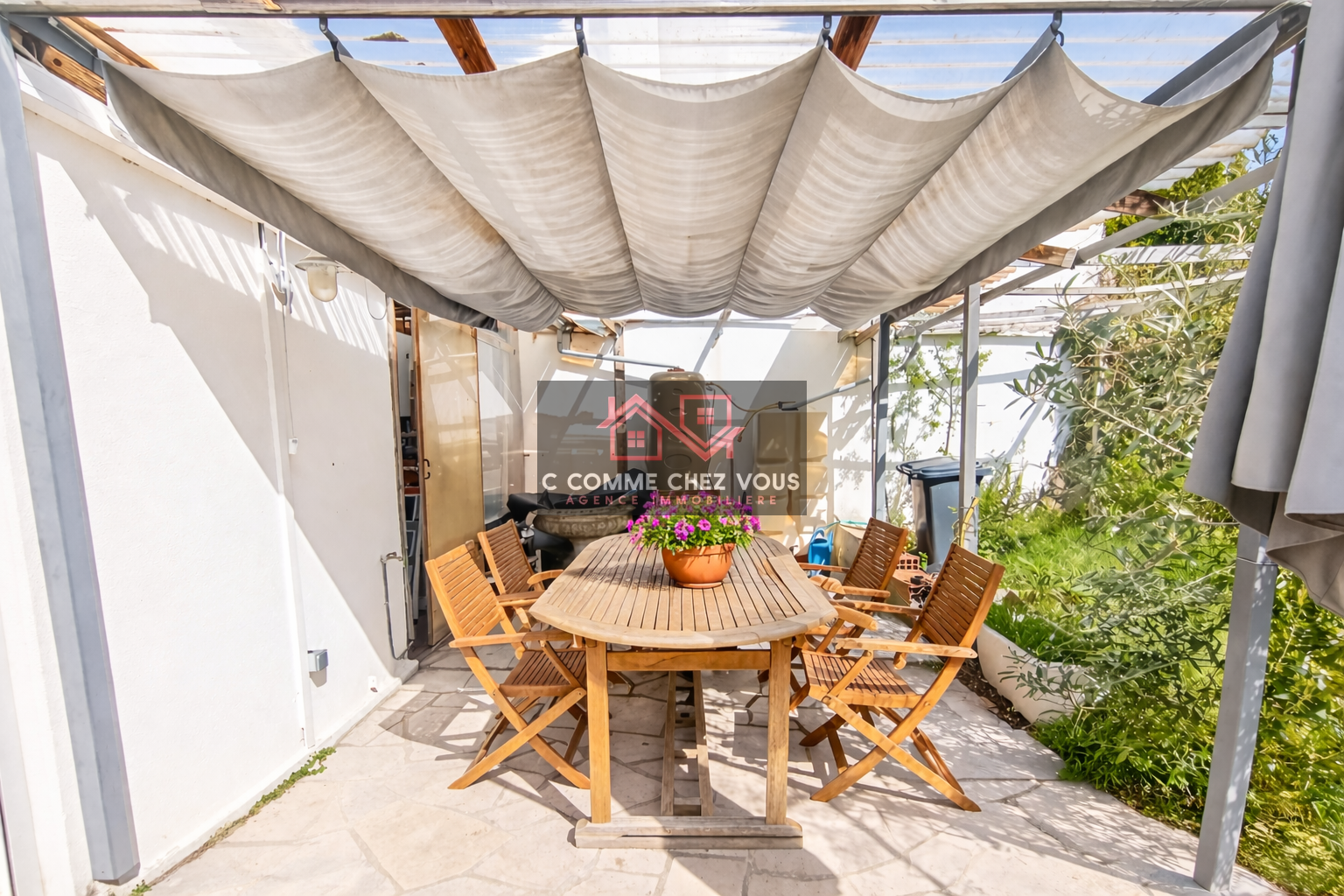 L'extérieur est tout aussi charmant, beau jardin clos, terrasse avec pergola très agréable pour prendre ses repas.