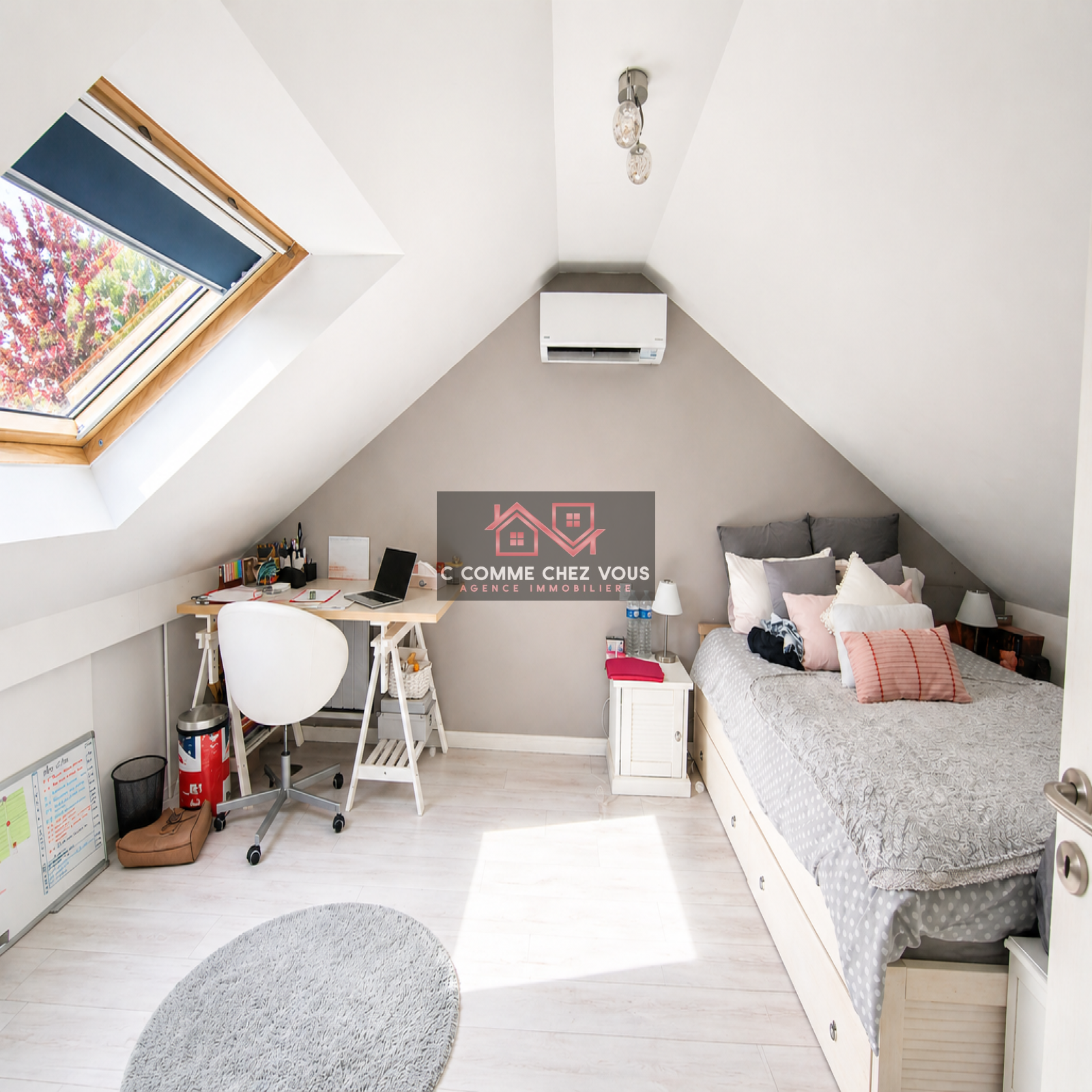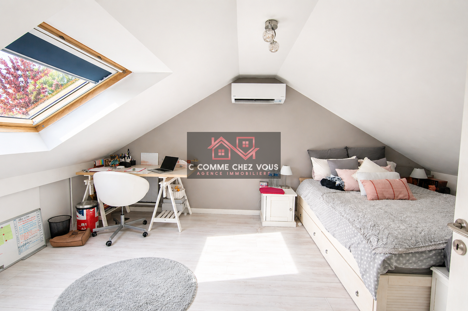 À l’étage :Une pièce palière desservant deux belles chambres, une salle d’eau avec WC (préaménagée), un espace sous combles aménageable.