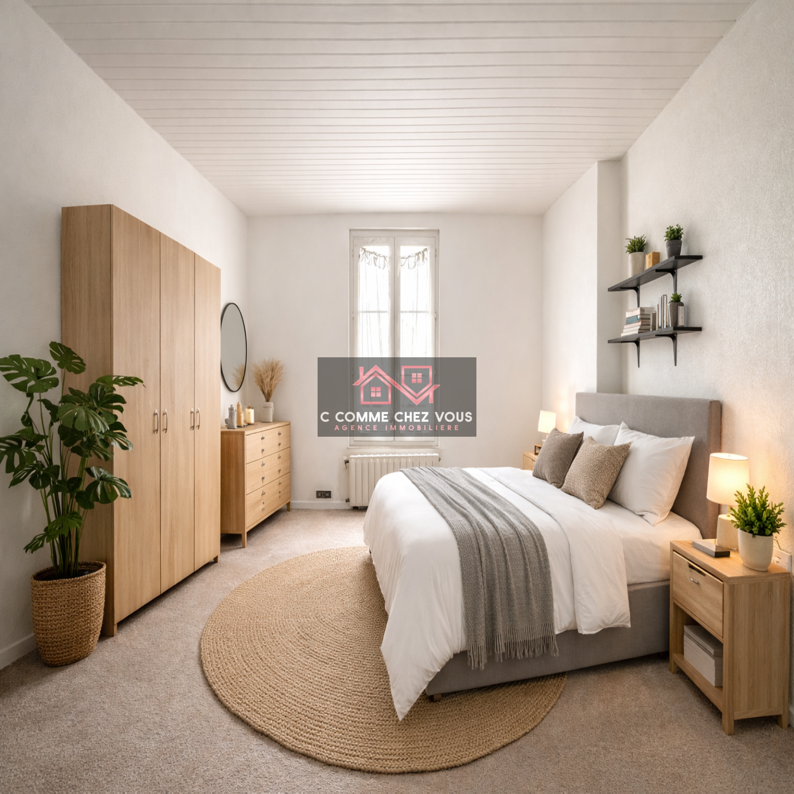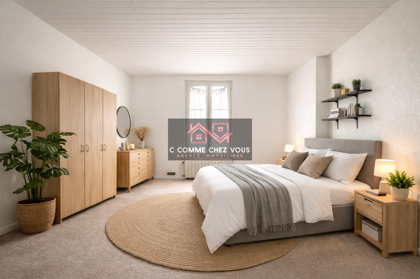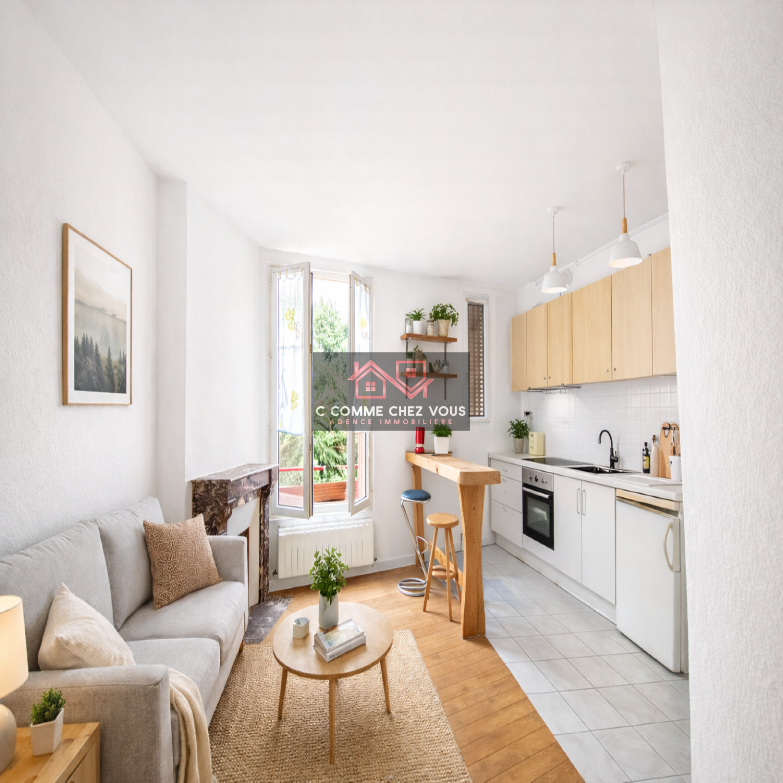 L'appartement se compose d'une pièce de vie avec une cuisine ouverte et son snack, d'un séjour avec cheminée et d'une grande chambre. il compte aussi une salle d'eau avec wc.