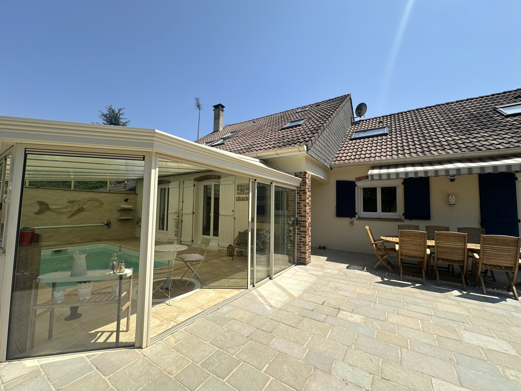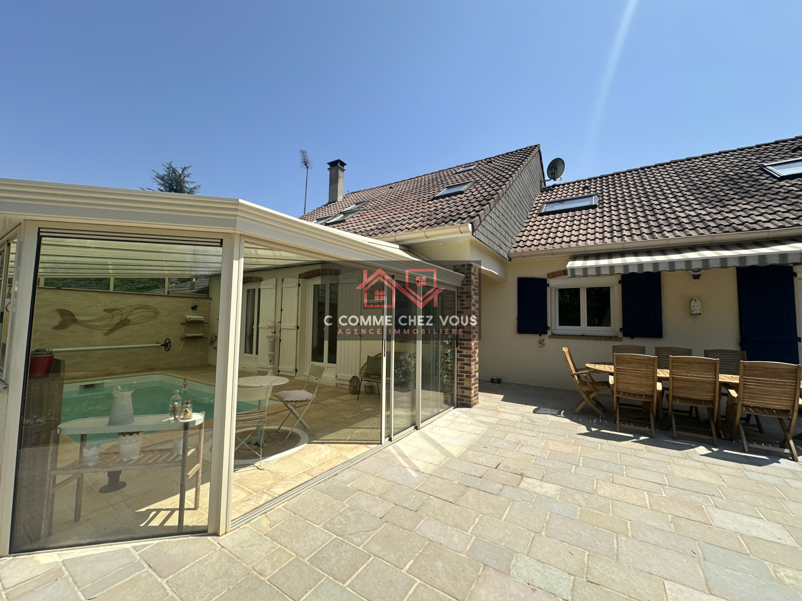 Découvrez à Lesigny dans le quartier recherché de Villarceau, cette maison de 7 pièces au calme exposée ouest, de 265 m². Dès l'entrée, vous serez séduit par les volumes et ses rangements. Cuisine équipée, dinatoire avec verrière, espace salle à manger, salon avec poêle à bois, vue sur piscine et vide sur salon très agréable. Le rez-de-chaussée compte aussi un espace nuit avec 2 chambres, un dressing, salle d'eau et wc. A l'étage, 3 autres chambres de belle taille avec rangements, salle de bains, wc et mezzanine complètent cette grande maison idéale pour accueillir toute la famille Pour un confort optimal, vous pourrez profiter à souhait de la piscine couverte et chauffée, accessible depuis le salon et du jaccuzzi en extérieur Une terrasse et un jardin clos sans vis à vis agrémentent cette maison. Le terrain du bien s'étend sur 981 m². Cette maison est équipée de fenêtres en pvc double vitrage, de volets roulants éléctriques, de la climatisation et de la fibre. Vous êtes amateurs de voiture ou deux roues, six places de parking possible dans l'enceinte de la maison et deux garages dont un double sont prévus pour garer les véhicules. Un visiophone assure un accès sécurisé et le portail coulissant est motorisé. Cette maison est située dans un quartier calme. Le Collège les Hyverneaux, l'École Materelle Villarceau et l'École Élémentaire Villarceau se trouvent à moins de 10 minutes à pied. Côté transports en commun, il y a deux lignes de bus (10 et 14) dans un rayon de 1 km. Vous trouverez une bibliothèque dans les environs. On trouve également des restaurants, des commerces, un supermarché, une boulangerie et un bureau de poste. Énergie, consommation ou émissions de gaz à effet de serre, voilà des critères primordiaux lorsque l'on envisage d'acheter. Les classes énergétique et climatique sont respectivement notées C (170 kWh/m² annuels) et A (de l'ordre de 5 Kg CO2/m²/an). Le montant des dépenses annuelles d'énergie pour un usage standard est estimé entre 1 450 € et 2 040 €. Elle est proposée à l'achat pour 599 000 €. Les honoraires sont à la charge du vendeur. Envie d'en savoir plus sur cette maison à vendre ? Prenez contact avec votre agence C Comme Chez Vous Immobilier Ozoir-La-Ferrière.